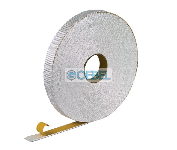 Taśma wykonana z włókna szklanego odporna na temperaturę 500 stC. Zastosowanie : Stosuje się w miejscach zetknięcia płaszcza z blachy, odizolowania i powstania mostków cieplnych.